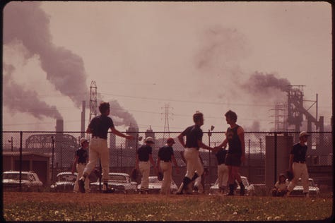 Smokestacks spit out small dots of blue fire at night against a red sky. Mills smell like burning sulfur. Before the city power washed the buildings in the late 90s and early 2000’s, the buildings were black with soot. On high pollution mornings or evenings, our sky is hazy orange. Our riverbeds are covered in old cars and industrial waste. The water will make you sick. Trains full of coal in the valley by the river sound like home.